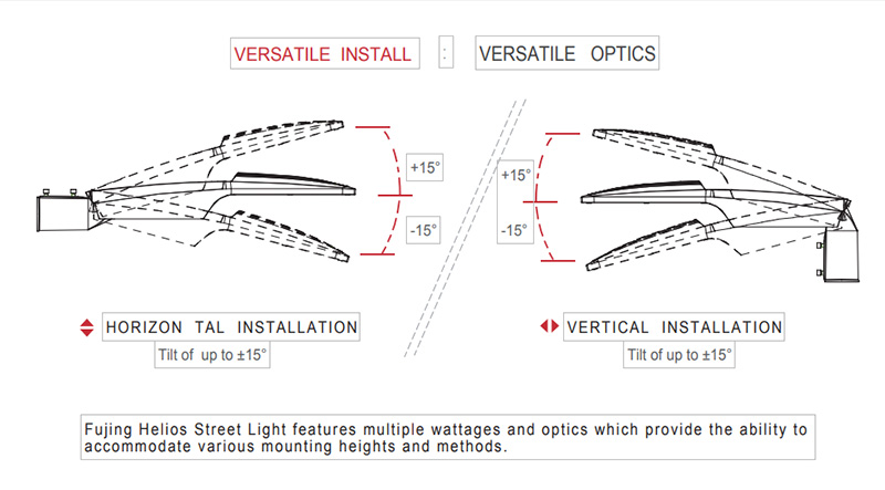 - can be installed horizontally and vertically,and the adjustable angle is ± 15 °